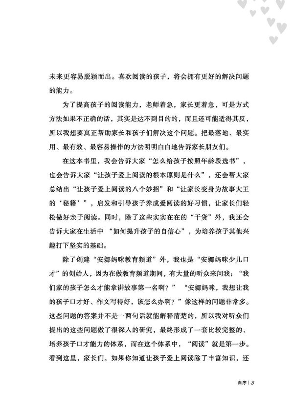 閱讀能(néng)力是一個人必須具備的能(néng)力,也是一個人從小就(jiù)需要培養而形成(chéng)的一種(zhǒng)素質,爲了提高孩子的閱讀能(néng)力,家長(cháng)們可謂是“煞費苦心”。安娜媽咪的這(zhè)本書,正是通過(guò)有效、實用、接地氣的方法,切實地幫助家長(cháng)解決幼兒早期閱讀方面(miàn)的問題。