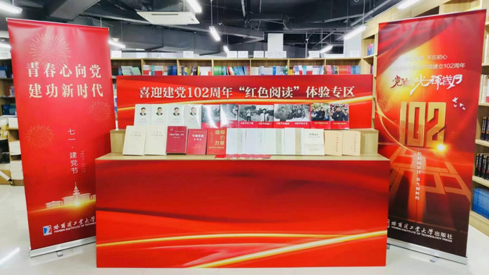 “七一”建黨節來臨之際,哈爾濱工業大學(xué)出版社校園書店爲慶祝中國(guó)共産黨成(chéng)立102周年,以“青春心向(xiàng)黨 建功新時(shí)代”爲主題開(kāi)展紅色主題出版物展銷活動。
