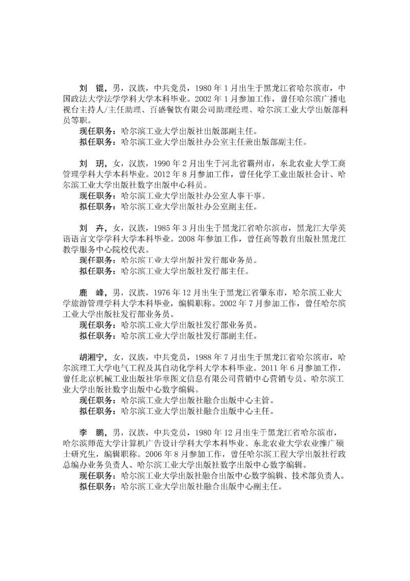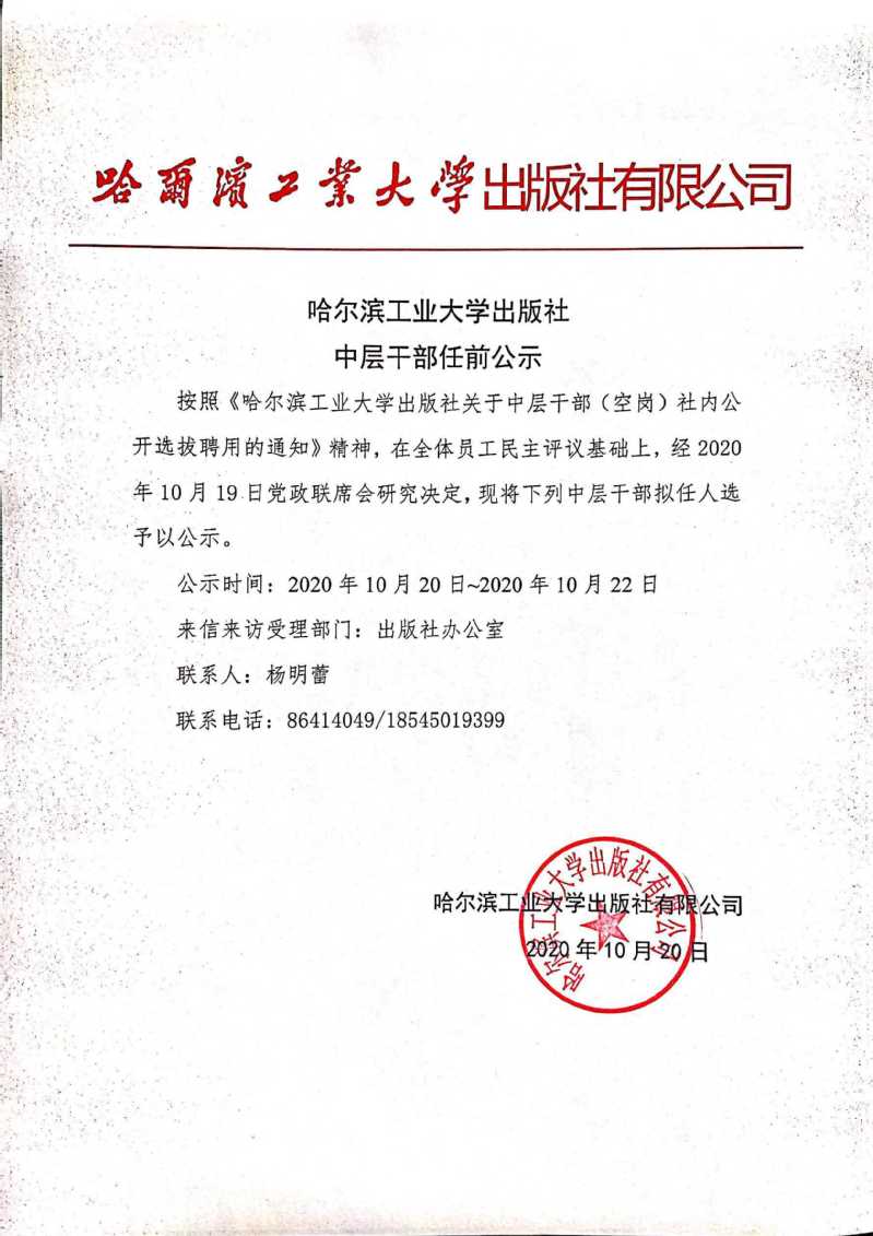 哈爾濱工業大學(xué)出版社中層幹部任前公示