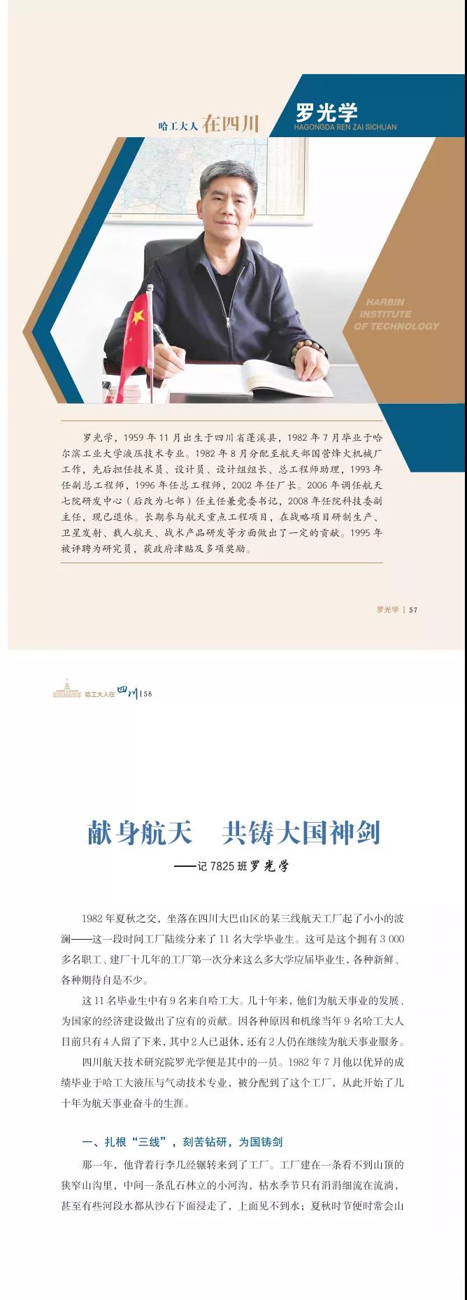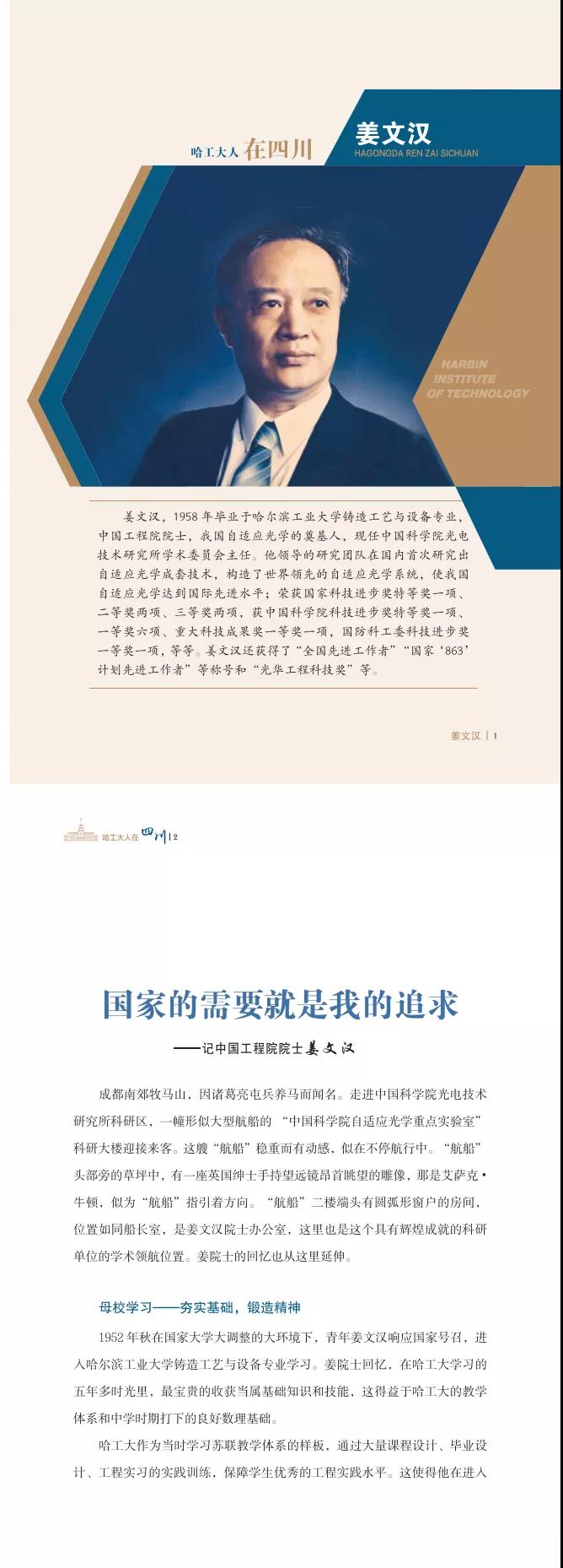 起(qǐ)四川,與哈工大有著(zhe)很深的淵源。且不論當年浩浩蕩蕩的“南遷北返”,從20世紀60年代開(kāi)始的“三線建設”(在中國(guó)的腹地重建軍事(shì)工業和能(néng)源、交通、礦業等基礎工業)在四川遍地開(kāi)花,直到20世紀末,在四川的哈工大人遍布“三線建設”156個項目的企業中,爲祖國(guó)做出了巨大的貢獻。此外,幾十年來,四川興建、擴建的衆多高校中,也都(dōu)留下了哈工大人的身影。