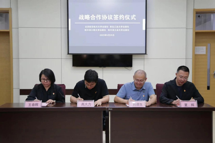 四家大學(xué)出版社同屬于工業和信息化部,在航空、航天、航海、材料、核、艦船等領域具有較強的出版優勢,爲開(kāi)展進(jìn)一步合作奠定了基礎。爲深入貫徹落實習近平總書記關于宣傳思想工作的重要思想,認真貫徹黨對(duì)出版工作的全面(miàn)領導,充分發(fā)揮出版在建設現代化産業體系、推進(jìn)新型工業化、服務支撐制造強國(guó)和網絡強國(guó)建設的重要作用,落實工業和信息化部出版工作會(huì)議要求,加強對(duì)推進(jìn)新型工業化的研究闡釋,推出系列高水平出版物,強化部系統協同合作,推動出版事(shì)業高質量發(fā)展,北京航空航天大學(xué)出版社、西北工業大學(xué)出版社、哈爾濱工業大學(xué)出版社、哈爾濱工程大學(xué)出版社簽署戰略合作協議。