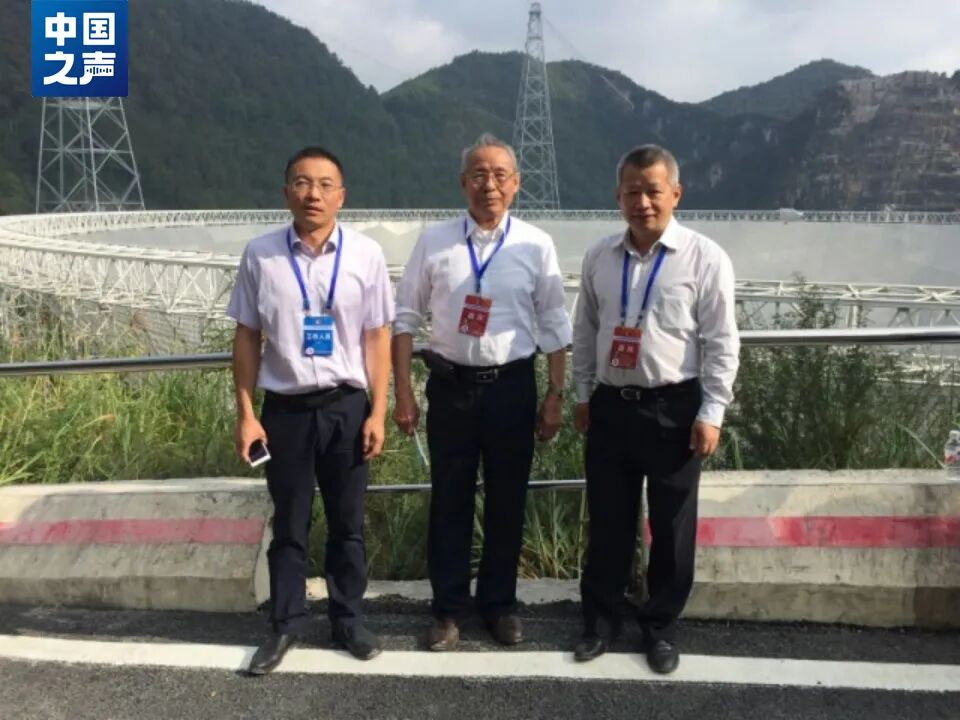 △沈世钊(中)和團隊成(chéng)員在落成(chéng)的“中國(guó)天眼”前