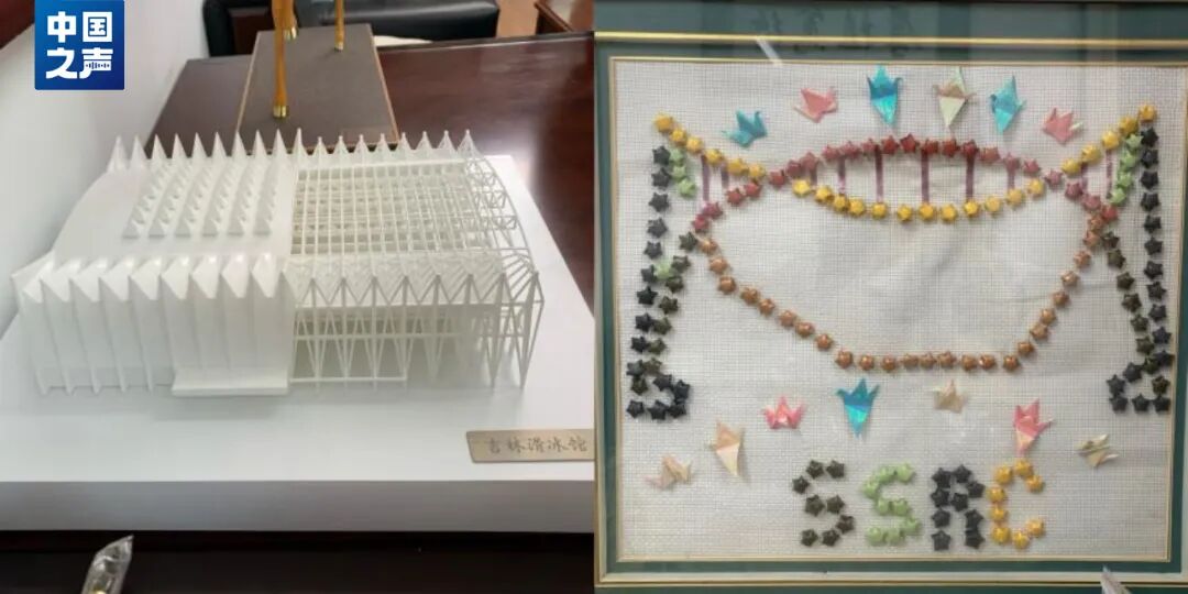 △沈世钊辦公室的吉林省滑冰館模型和手工禮物